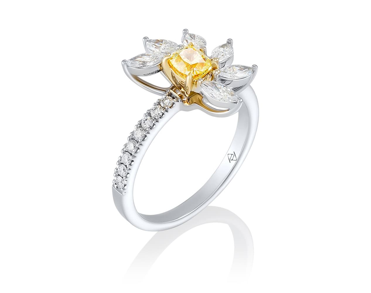 • Вставка: Бриллиант 1 шт. CUSHION - 0.51 карат , чистота - FY/VS1