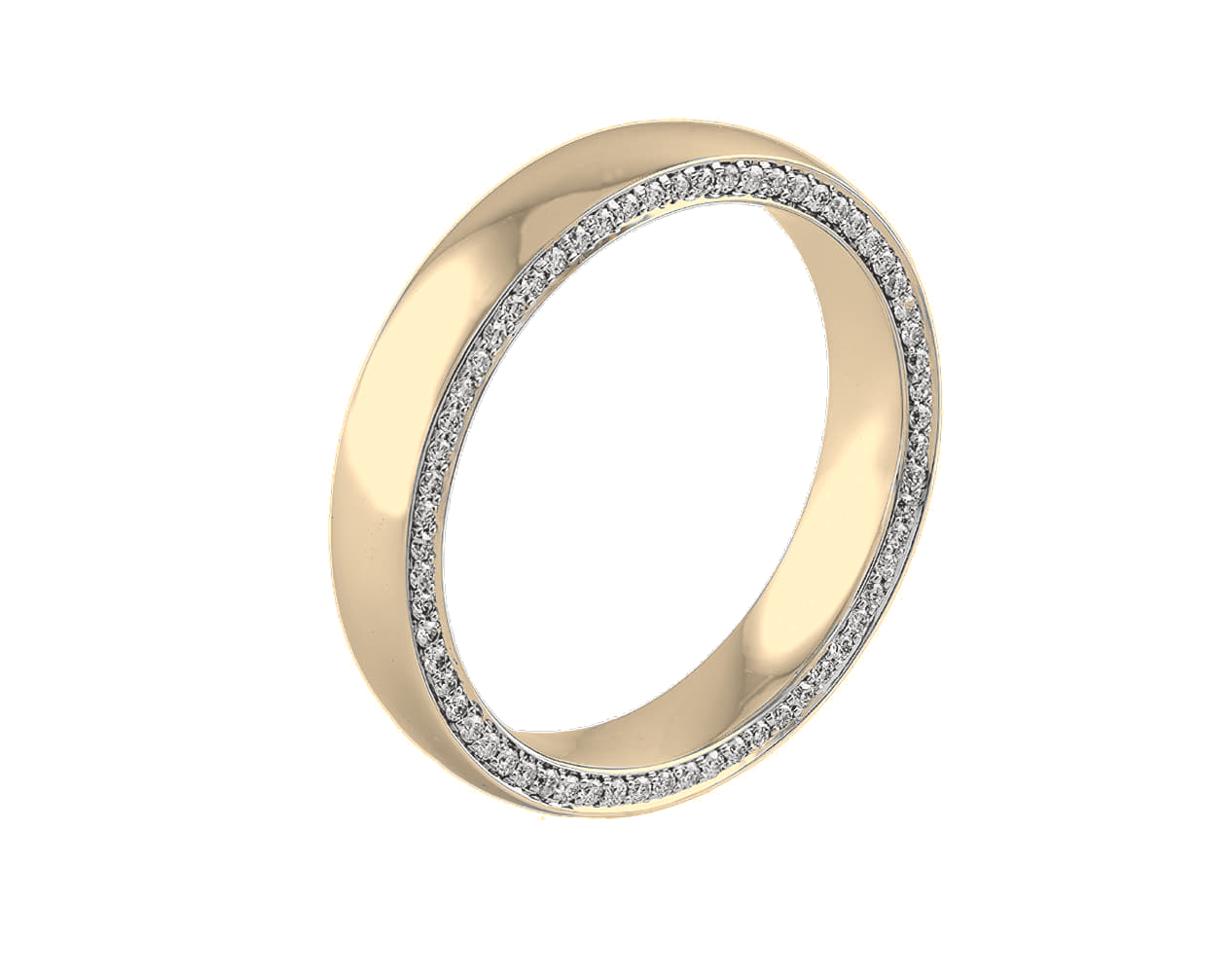 Это кольцо — не просто символ любви, это обещание быть рядом. Безупречный обод сверкает тонкой дорожкой сияющих бриллиантов, заключённых с внутренней стороны, словно тайное послание, известное только двоим. Лаконичное снаружи, оно хранит в себе глубину чувств и чистоту намерений.