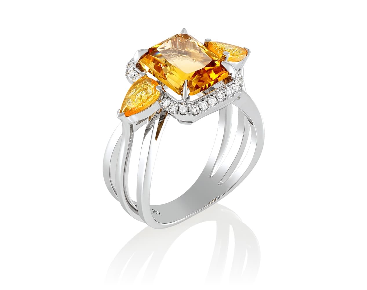 Как солнечный всплеск среди будничного дня, это кольцо не просто украшает — оно озаряет собой всё вокруг. Великолепный цитрин, будто пойманный луч тёплого света, манит искренней радостью, внутренней силой и теплом, которое невозможно подделать. Он сразу становится смысловым и энергетическим центром всей композиции.