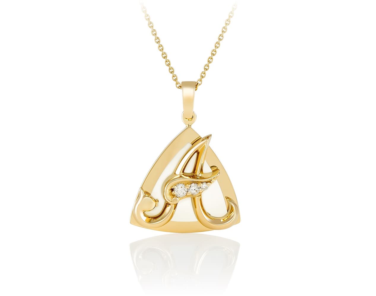 Этот кулон словно имя, начертанное золотом и светом. Он несёт в себе начало чего-то важного — твою историю, твоё имя, твоё «я». В изгибах буквы скрыта сила характера и нежность души. А сияние бриллиантов — как акцент на самых ярких чертах.