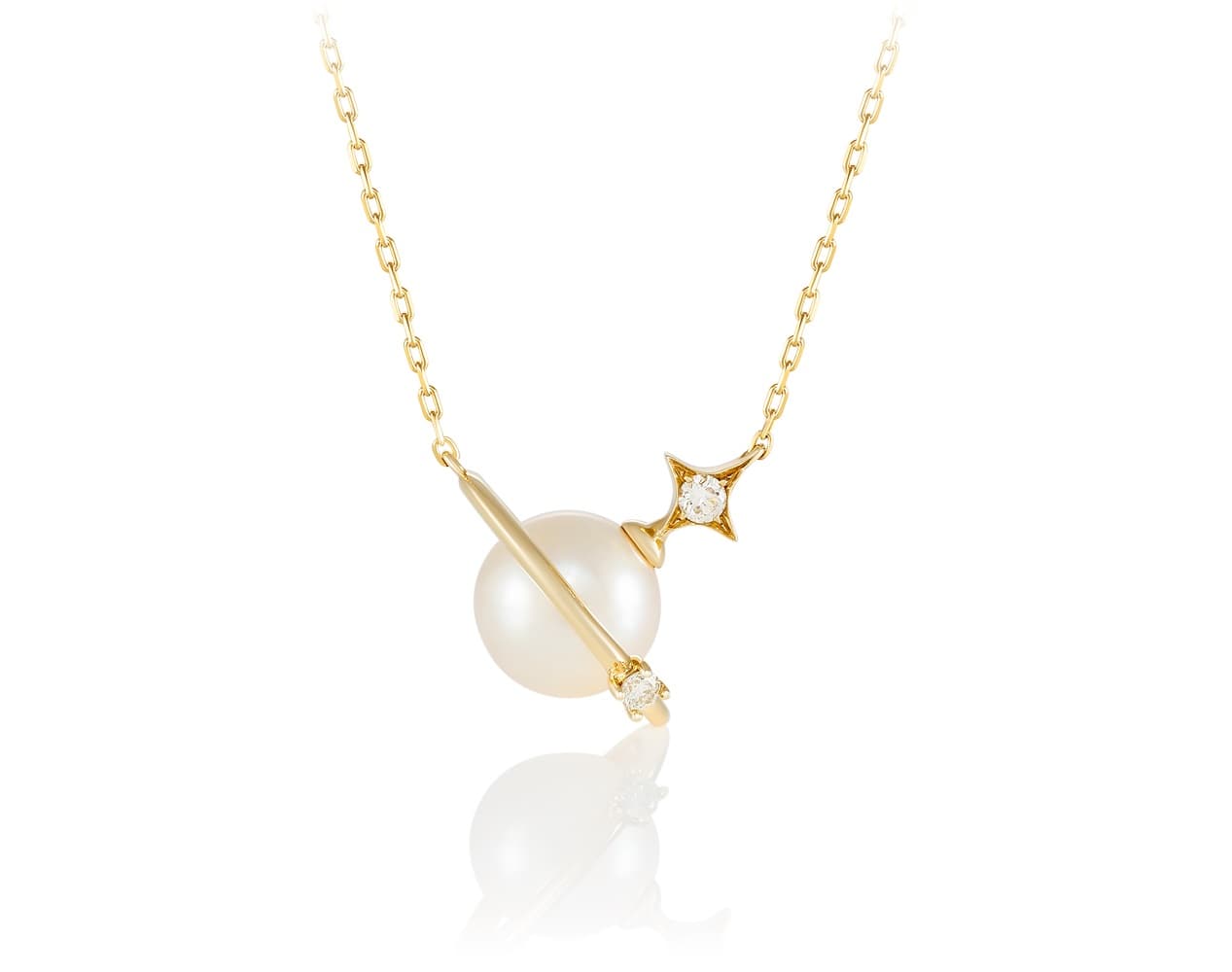 Он словно маленькая планета с собственной орбитой красоты. Тончайшее золотое кольцо, охватывающее жемчужину, — это не просто декоративный элемент, а символ твоего внутреннего мира, притягательного и таинственного. Бриллианты на орбите и звезда над ней — напоминание, что ты способна сиять даже в самые тихие и простые моменты.